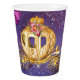 Fairy conte princess fête d'anniversaire tasses en papier avec belle voiture princesse or sur un joli arrière - plan violet et or brillant. Vous pouvez ajouter du texte pour personnaliser ces belles tasses de papier princesse. Il s'agit d'un dessin imprimé sans véritable parties scintillant.