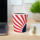 Commencez votre fête de réunion de famille avec ces tasses en papier rouge, blanc et bleu, au design simple, moderne et minimaliste. Personnalisez-les avec votre initiale monogramme au centre du cercle sur le côté gauche entouré de rayures rouges et blanches joyeuses.