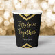 Ces élégantes tasses en papier présentent un chevron géométrique chic et les mots "50 Years Together" en faux feuille d'or contre un arrière - plan noir. Ils sont parfaits pour une célébration du 50e anniversaire du mariage. Personnalisez-le en remplaçant le texte de l'espace réservé par vos propres informations. Pour plus d'options comme changer la police et sa taille/couleur ou l'espacement entre les lettres cliquez sur le bouton "Personnaliser". *Veuillez noter que le filigrane Zazzle qui apparaît dans l'aperçu du zoom n'apparaîtra PAS sur le produit imprimé final. © Bois de rose et agrumes