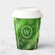 Ajoutez une touche festive aux fêtes de fin d'année et de Noël avec ces élégantes tasses en papier, qui présentent des flocons de neige tombant sur un faux papier vert de forêt métallique / ombre / arrière - plan. Ajoutez le texte initial/monogramme (ou logo), le nom, l'année ou le texte personnalisé selon vos besoins. Design © W.H. Sim. Voir plus sur zazzle.com/expressionsoccasions