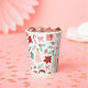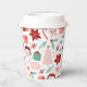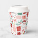 Motif de Noël rose et rouge, y compris les arbres de Noël, les cadeaux, les bonbons et le Père Noël.