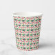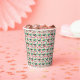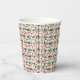 A holiday-themed paper cup covered in a cute Christmas pattern featuring stars, small decorated trees, red ornaments, candy canes, and tiny gifts. A bright and joyful design that brings a festive touch to winter parties and holiday gatherings.