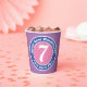 Commémorez un 7ème anniversaire avec une tasse en papier qui est décorée avec le nom du destinataire, ainsi que leur âge, et la date de naissance.