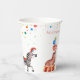 Belle tasse de papier carnaval de cirque pour TOUT ÂGE! Cette tasse en papier met en vedette de mignons animaux de cirque, des ballons d'air, des bonbons, des rubans, des drapeaux de brume festifs, des confettis colorés et bien plus encore.