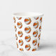 Ces tasses de papier de fête de basket-ball ont plusieurs petites boules de basket orange et blanc disposées dans un simple motif de goutte - le texte sur un graphique en cercle blanc peut être customisé, actuellement le nombre 14 pour représenter l'âge d'un enfant encerclé par les mots "Joyeux anniversaire" - par katz_d_zynes