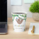 Célébrez l'anniversaire de votre enfant avec ces mignonnes tasses de papier de fête d'anniversaire paresseux ! Un adorable parfum peint à la main dans un casquette à pois bleu et blanc, accroché dans la jungle. Des vignes battantes et des feuilles de jungle décorent l'arrière - plan