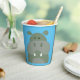 Anniversaire fête amusant tasse en papier hippo pour la décoration de table d'anniversaire. Un joli design de décoration pour la fête des enfants. L'hippo serait idéal pour une soirée à thème au zoo ou si l'enfant aime l'hippo. L'arrière - plan est bleu et l'hippo dans les tons verts.