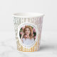 Tasse en papier moderne contemporaine pour la fête d'anniversaire photo. Avec espace pour la photo et l'information. Moderne rose girly, pur[ple, turquoise, bleu, vert, orange, jaune pastel arc-en-ciel et blanc peuvent être customisés selon votre style.