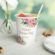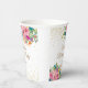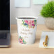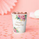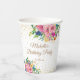 Elégante aquarelle rose, bleu et jaune fleurie sur des tasses de papier blanc de fête d'anniversaire, personnalisée avec le nom de l'invitée d'honneur et sa date de fête. Contactez-nous pour obtenir de l'aide sur la personnalisation ou pour demander des produits correspondants.
