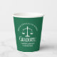 Cette tasse de papier de fin d'études de droit vert personnalisée présente la typographie blanche pour une classe de 2024 diplômé. Customisez avec votre année de graduation sous les échelles de justice pour un grand décor d'avocat ou d'avocat personnalisé.