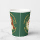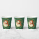Ces tasses en papier de Noël ont un magnifique portrait rétrograde du Père Noël entouré de saints sprigs. Il est encadré d'un texte courbe or qui dit "Joyeux Noël" et "Joyeux Nouvel An". L'image est imprimée deux fois sur les tasses, et votre texte personnalisé est en blanc au centre. Tout est placé sur un arrière - plan vert Vacances.