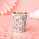 Gobelets en papier pour fête de mariage floral rose pastel. Articles assortis disponibles.