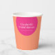 Ajoutez une touche de couleur à votre fête de mariage avec ces gobelets en papier rose et orange, dotés d'un motif géométrique chic. Parfaits pour servir des boissons, ces gobelets élégants apportent une touche moderne à votre célébration. En cliquant simplement sur "Personnaliser", vous pouvez adapter le texte pour qu'il convienne parfaitement à votre événement. Pour encore plus d'options de personnalisation, cliquez sur "Modifier à l'aide de l'outil de conception" pour explorer des possibilités infinies ou envoyez-moi un message pour discuter d'une conception entièrement personnalisée.