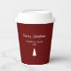 Coupe en papier rouge de Noël moderne, avec un design de typographie simple à feuillage persistant et personnalisable. Un ajout festif à votre table de dîner en cette période de fêtes.