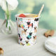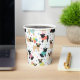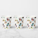 Cute birthday party Pug dogs with black and tan coats dressed in cute birthday outfits with balloons, cake and confeti pattern.