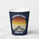 Ce coucher de soleil vintage orange cool sur des montagnes rocheuses dans la nature fait une belle image sur une mignonne tasse en papier pour une réunion de famille, un voyage sur la route ou des vacances d'été. Commémorez votre semaine de vacances avec un décor de fête amusant avec votre propre nom de famille et l'année.