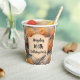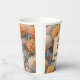 Célébrez n'importe quel âge avec une jolie tasse en papier personnalisable. Magnifique chrysanthèmes rose et orange avec papillons bleus et somptueuse végétation. Un design féminin élégant mais joli.
