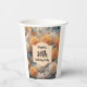 Célébrez n'importe quel âge avec une jolie tasse en papier personnalisable. Magnifique chrysanthèmes rose et orange avec papillons bleus et somptueuse végétation. Un design féminin élégant mais joli.