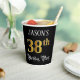 Cette conception opulente et sophistiquée de tasse de papier d'anniversaire comporte un nom personnalisé et le message "38th Birthday Party". Le grand numéro "38ème" a un motif de coloriage imitation/faux d'inspiration or, et les mots "fête d'anniversaire" sont dans un texte orné de style script. L'arrière - plan est coloré en noir par défaut (bien qu'il puisse être customisé). Des gobelets en papier élégants et ornés comme celui-ci peuvent être utiles lors d’une fête d’anniversaire ou d’une fête organisée pour célébrer le trente-huitième anniversaire de quelqu’un. [~Z0000567]