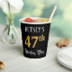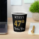 This elegant and luxuriants Birthday paper cup desobjets a custom name and the message "47th Birthday Party". The large number "47th" has an imitation/faux gold-inspecred coloring pattern, and the words, "Birthday Party" are in ornate script style. The background is colored black by default (although it can be customized). Ornate, fancy paper cups like this might be used at a birthday celebration/party g held to honor somebody's forty seventh birthday. 2.