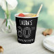 Ce design élégant des années 1920-1930, inspiré art déco, design de tasse en papier à thème d'anniversaire, porte un nom personnalisé, ainsi que le message "80E FÊTE D'ANNIVERSAIRE !". Le numéro "80TH" a un look géométrique et soigné. De luxueuses tasses en papier comme celle-ci peuvent être amusantes à utiliser lors d’une fête d’anniversaire en l’honneur du quatre-vingtième anniversaire de quelqu’un, ou d’un autre 80e événement. [~Z0000658]