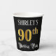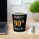 Cette conception opulente et sophistiquée de tasse de papier d'anniversaire comporte un nom personnalisé et le message "90th Birthday Party". Le grand numéro "90th" a un motif de coloriage d'inspiration or imitation/fausse, et les mots "Birthday Party" sont dans un texte de style script luxueux. L'arrière - plan est coloré en noir par défaut (bien qu'il puisse être customisé). Des gobelets en papier de luxe comme celui-ci pourraient être utiles à une fête d’anniversaire pour célébrer le quatre-vingt-dixième anniversaire de quelqu’un. [~Z0000567]