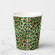 Ajoutez une touche de sophistication sauvage à votre fête avec ces tasses en papier vert émeraude et or avec un arrière - plan d'impression léopard et guépard frappant.