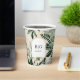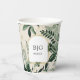 Aquarelle botanique verdure à thème tasses à papier pour mariage, douche nuptiale, anniversaire, baby shower, baptême anniversaire et plus. Cette tasse à papier à motifs présente de beaux feuilles de feuillage botanique peints avec arche de saumons boho moderne encadrée d'une fausse ligne de feuille d'or. Personnalisé avec les initiales de la mariée et du marié ou juste un monogramme. pour la fête à thème jardin, bois et extérieur, ces tasses en papier sont un choix idéal.