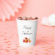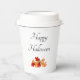 Chute laisse des tasses en papier, avec un design de feuilles rouges et dorées et des lettres typographiques personnalisables. Un ajout élégant à votre fête d'automne ou d'Halloween.
