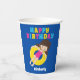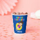 Joyeuse fête de piscine pour enfants Bonne tasse de papier d'anniversaire pour un enfant brune dans l'équipe de natation pendant l'été. Dispose d'une pop de couleurs éclatante et amusante et d'une adorable nageuse dans un tube intérieur. Personnaliser spéciale pour la décoration pour enfants.