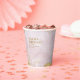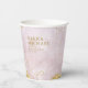 Un arrière - plan d'aquarelle dans les tons de lavande douce à mauve est surmonté d'une abstraite de lignes dorées fines et d'effets lumineux scintillants pour créer les pièces de cette belle suite mariage. La tasse en papier mariage montrée ici contient également du texte non centré et un modèle pour tenir les noms de la mariée et du marié, la date du mariage et un message de remerciement pour vos invités. Recherchez ID867 pour voir d'autres pièces et choix de couleurs pour cet ensemble.