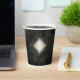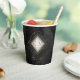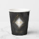 Un arrière - plan d'aquarelle dans les tons gris-fusain au noir est surmonté d'une abstraite de lignes dorées fines et d'effets lumineux scintillants pour créer les pièces de cette belle suite mariage. La tasse en papier mariage montrée ici présente également un cadre en losange dégradé pour tenir les initiales de la mariée et du marié et la date du mariage. Ajoutez facilement un message de remerciement personnel en utilisant le modèle fourni. Recherchez ID867 pour voir d'autres pièces et choix de couleurs pour cet ensemble.