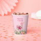 Un joli flamant rose exotique avec des fleurs rose et jaune exotique et des feuilles sur arrière - plan rose clair. monogramme facultatif