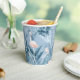 Cette tasse en papier présente un magnifique motif de flamants roses entouré d'abondants feuillages tropicaux et d'orchidées en bleu poussiéreux et rose roux. Cherchez ID868 pour voir d'autres produits avec ce cool, motif tropical.