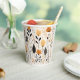Design floral avec des couleurs chaudes comme l'orange, le jaune et le marron. La motif est également agrémentée de feuilles verts et de fleurs blanches, ce qui ajoute un peu de contraste et de fraîcheur à l'ensemble.