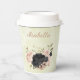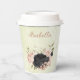 Joli cup en papier romantique avec des fleurs roses blush et noires et quelques feuilles jolies .