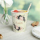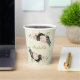 Joli cup en papier romantique avec des fleurs roses blush et noires et quelques feuilles jolies .
