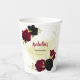 Belle tasse en papier avec des fleurs noires et rouges et des feuilles d'or. POUR PLUS DE PRODUITS CORRESPONDANTS cliquez sur la collection ci-dessus ou contactez-moi
