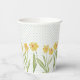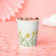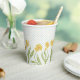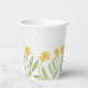 Apportez au printemps et à l'été avec ce charmant design de tasse en papier qui présente des fleurs sauvages jaunes illustrées de façon peinte avec des tiges vertes et des feuilles contre un subtil arrière - plan de blanc cassé avec un motif de pois bleu pâle.