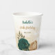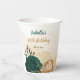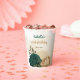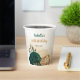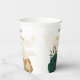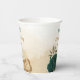 Magnifique gobelet en papier d'automne avec des fleurs vert émeraude et or beige avec des feuilles vertes .
