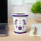 Fleurs violettes royales et blanches romantiques avec feuilles en argent dans une tasse en papier botanique.
