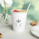 Cette suite mariage est décorée dans un style rustique hivernal, avec des sapins et des boisés enneigés, dans une palette de couleurs allant de la sauge douce au vert foncé. Cette tasse en papier de coordination, avec son motif brumeux de la forêt est parfait pour les couples qui veulent célébrer leur amour dans une atmosphère intime et cosy. Ajoutez vos noms, initiales et date de mariage à l'aide du modèle fourni. Recherchez ID1049 pour voir tous les produits de cette suite mariage.