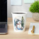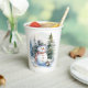 Cette conception présente une aquarelle illustrant le bonhomme de neige en forêt hivernale.