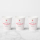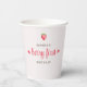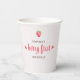 Des tasses de papier de première fête conçues sur mesure pour fille avec un script à main moderne "berry first" avec des fraises aquarelles.