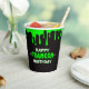 Drôle Halloween heureux anniversaire tasses de papier noir avec goutte de citron vert et texte heureux anniversaire franken.