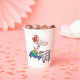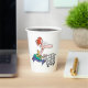 Un commerçant frénétique se promène avec un panier. Cette conception semble vraiment efficace sur ces tasses de papier