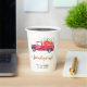 Camion rouge à l'aquarelle mignonne avec tasses en papier citrouilles pour votre dîner Friendsgiving. Image aquarelle de Kristine Lee. Pour en savoir plus, visitez le site www.kristineleedesigns.com