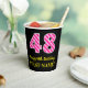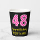Ce joyeux autocollant carré à thème d'anniversaire comporte un grand numéro "48" avec un motif rose foncé et rose clair rayures, avec le message "Happy 48th Birthday,", et un nom personnalisé. L'arrière - plan est noir de couleur. Des tasses en papier gaies comme celle-ci peuvent être amusantes à utiliser lors d’une fête en l’honneur du quarante-huitième anniversaire de quelqu’un. [~Z0000580]