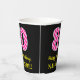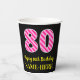 Ce joyeux autocollant carré sur le thème de l'anniversaire comporte un grand numéro "80" avec un motif rose clair et rose foncé rayures, avec le message "Happy 80th Birthday,", plus un nom personnalisé. L'arrière - plan est noir de couleur. Des tasses de papier sur le thème de l’anniversaire comme celle-ci pourraient être utilisées lors d’une fête célébrant le quatre-vingtième anniversaire de quelqu’un. [~Z0000580]