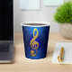La clef G ou Treble en or, avec un arrosage de petites notes autour, image créée avec intelligence artificielle. Express l'essence musicale de vous avec des tasses en papier enveloppées de notation musicale.